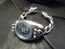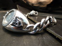 重みのあるシルバーのウォッチケースにたいしてチェーンパーツの関節部分は若干細見。