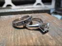 石の外れたハーフエタニティーと立て爪デザインのリングは普段使いにはもう使えないと言うことで、2つのリングを使って普段使い用のリングを1つ作ってほしいというご依頼でした。