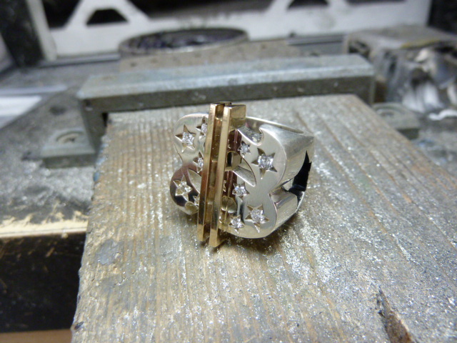 1箇所石が外れてなくなってしまっているので、はめ直しになりますが定型サイズでないのでありあわせのストーンから目的のサイズに削り出しはめ込みます。